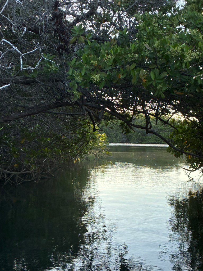 We went through a mangrove tunnel and sat silently for a bit just listening to nature. She pointed out the difference between the white and red mangroves and how they grow and protect the land.