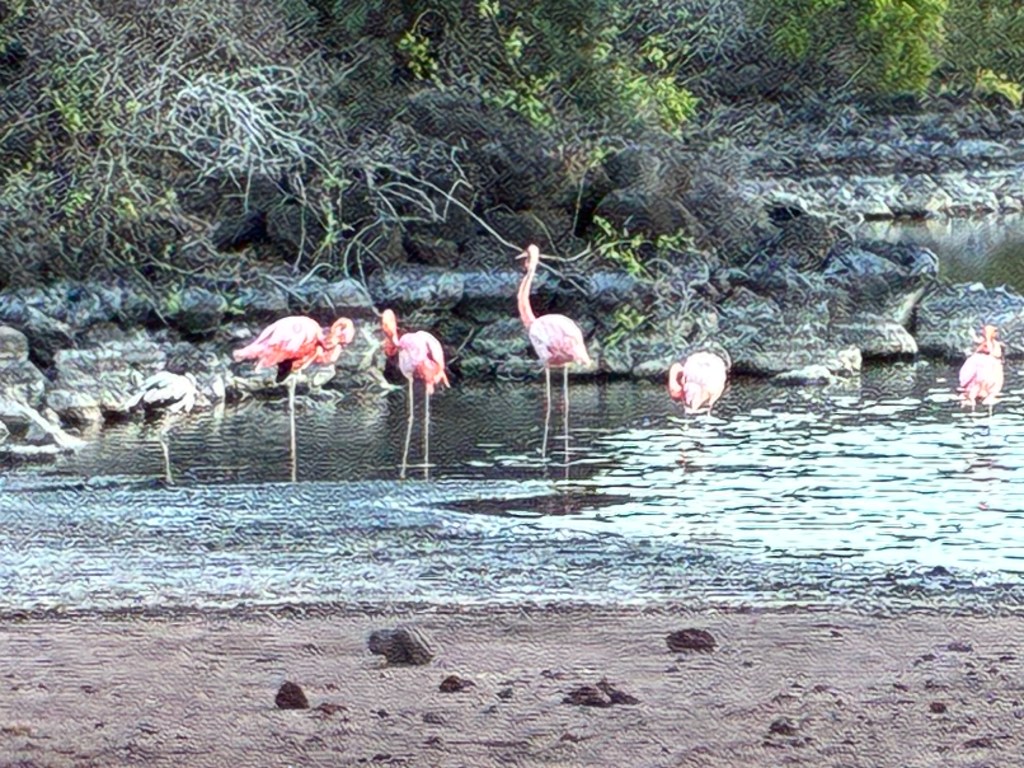There was a lagoon a short walk from the beach. This was a Galapagos mockingbird on the tree as we walked in and later, one came right up to me on the beach and sang. It was pretty neat.