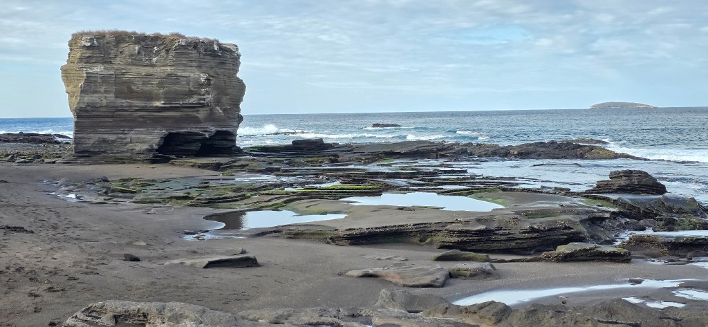 You can see a beach beyond the praying monk and this is where Darwin landed.