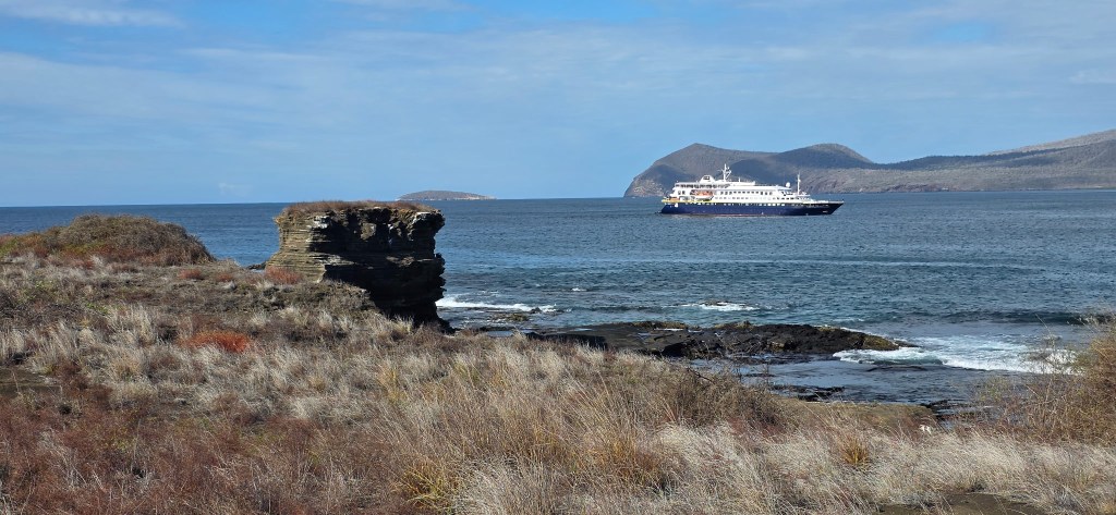Obviously we made it back to the ship safely and a little damp. They canceled kayaking because it was just too rough. They moved up a meeting to get details about leaving tomorrow and the ship moved location to another area of Santiago Island.