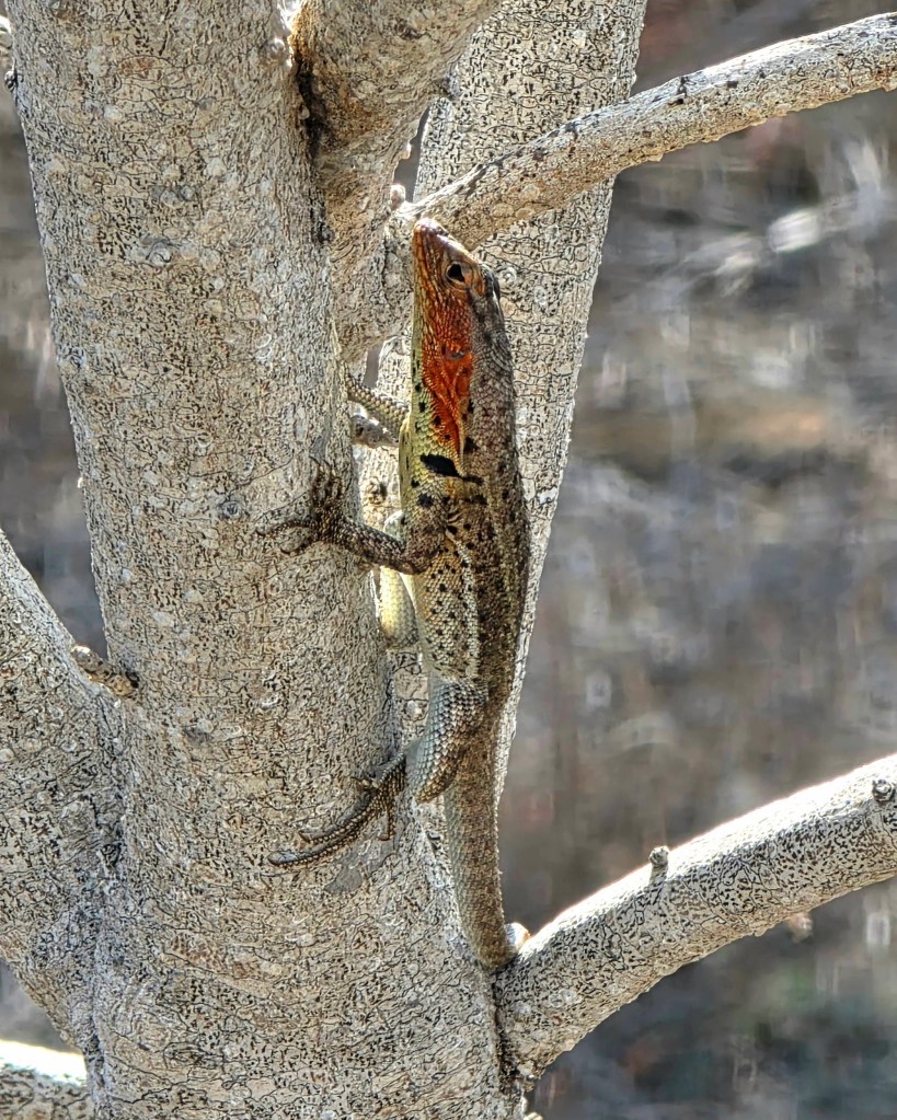 There was a land iguana hanging out next to the trail and we watched him eat some yellow flowers.