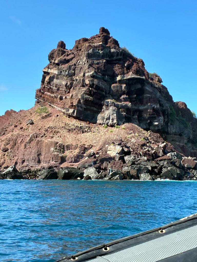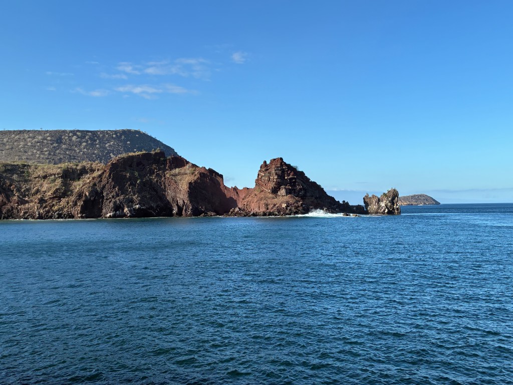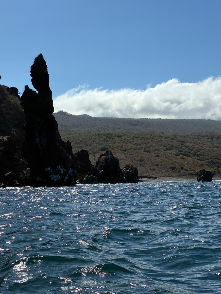 However, they said we could go out in the Zodiac and see where Darwin landed on Santiago Island, the praying monk, and possibly some animals. Stupidly, I went on the boat. The waves were enormous. I had a lot of faith in our Zodiac driver. They have proven to be amazing. However, I could not look at the water.